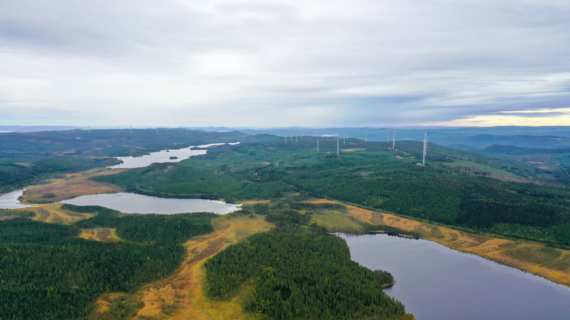 The grid connection is made through an overhead cable to the power station in Överturingen, which then continues on to the grid station in Rätan. The area consists mainly of coniferous forest.